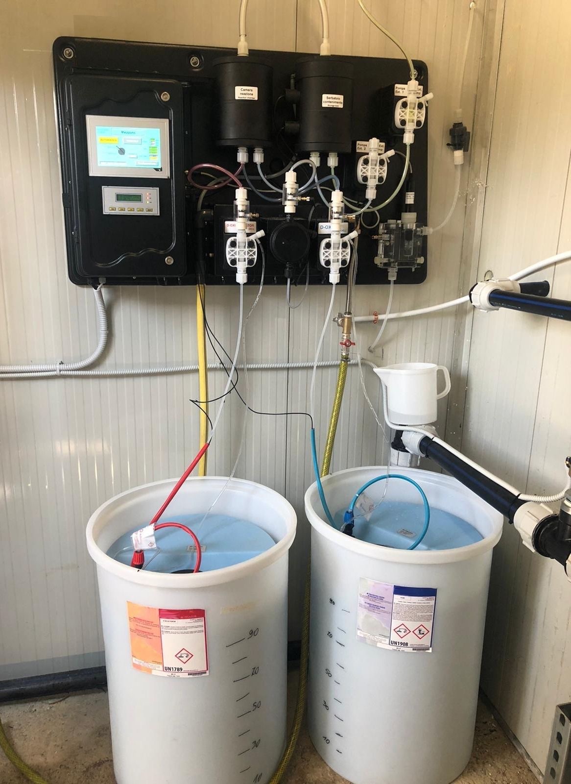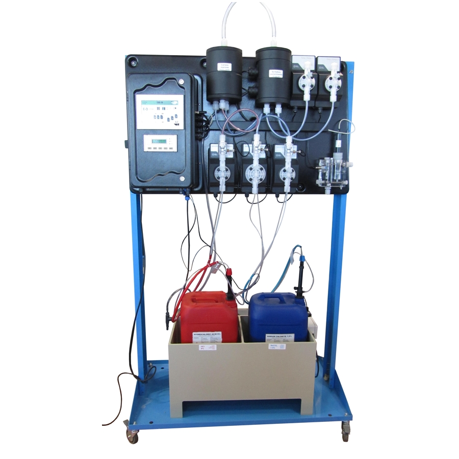 Además, el sistema incluye varios controles de seguridad, como sensores de nivel, controles de fujo y sensor de gas dióxido de cloro en el aire.